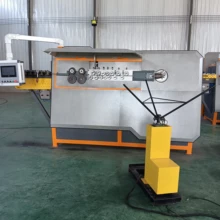 無誤差自動調(diào)直機 包括機架、微電腦控制器、內(nèi)設有調(diào)直小輪的調(diào)直框、電動機、長度控制觸片、鋼筋自動切斷機構和自動脫料機構,它在微電腦控制器上輸入剪切鋼筋數(shù)量,根據(jù)鋼筋的剪切長度設定好長度控制觸片在脫料槽板上的安裝位置,由電動機帶動內(nèi)設有調(diào)直小輪的調(diào)直框作高速旋轉,高速旋轉的調(diào)直框內(nèi)的調(diào)直小輪成螺旋狀擠壓卷曲的鋼筋,使鋼筋被壓直并不斷向前拉伸,實現(xiàn)鋼筋調(diào)直。廣西全自動切斷機