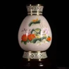 馬到成功之大國財尊由國內(nèi)大師米振雄設(shè)計創(chuàng)作,以故宮乾隆《八寶紋如意耳瓶》為原型創(chuàng)新打造,一面飾以蓮花,荷葉,蓮藕,梅花,另一面是拉著財寶正在奔跑的馬車,寓意為吉祥之兆,釉色艷麗純凈的特點來描繪華夏盛世正在以千里良駒的速度跨越世界的美好愿景。