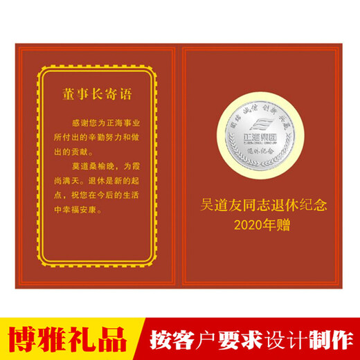 榮休紀(jì)念牌榮退離崗紀(jì)念品主要頒發(fā)給離退休職工的,單位定制枚退休紀(jì)念章對(duì)員工心里倍感溫暖。一枚小小的紀(jì)念章,折射出企業(yè)對(duì)我們老職工的厚愛(ài)與敬重之情,讓我很感動(dòng),公司工會(huì)負(fù)責(zé)人送上的退休紀(jì)念章,非常激動(dòng),一直感謝工會(huì)想得周到。