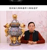 紋飾:通體上下共20層紋飾,云福紋、寶相花、福蓮紋、萬字紋相互環(huán)繞,寓意“金資寶相,萬福連年”。爐身主題紋飾分別為“福兆山河”、“祿冠天下”、“八寶獻(xiàn)壽”、“吉慶雙喜”、“四時(shí)聚寶”、“萬世康寧”,表現(xiàn)“福、祿、壽、喜、財(cái)、康寧”六大主題,充滿祥和、安康、平安、如意的氣氛。