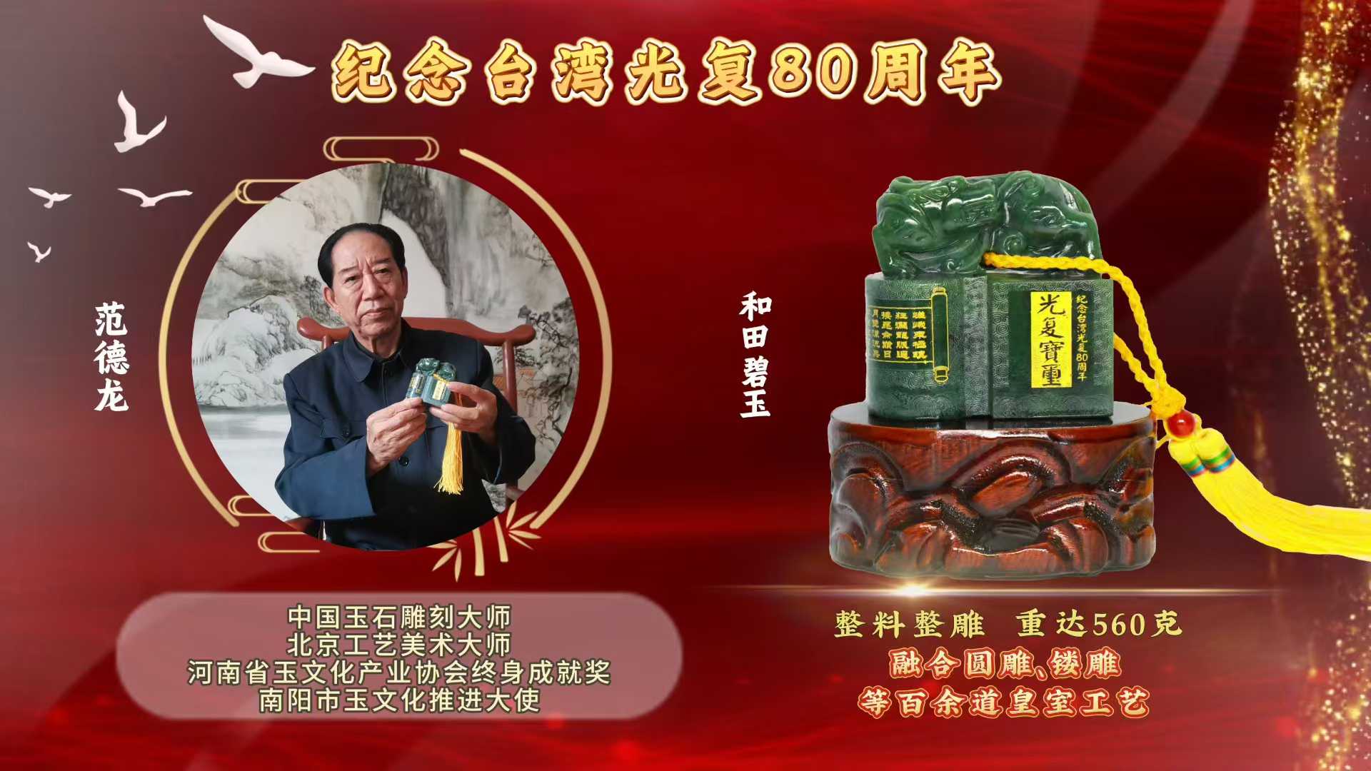 光復紀念日之際范德龍大師選用和田碧玉創(chuàng)作這款光復寶璽重560克整料整雕!