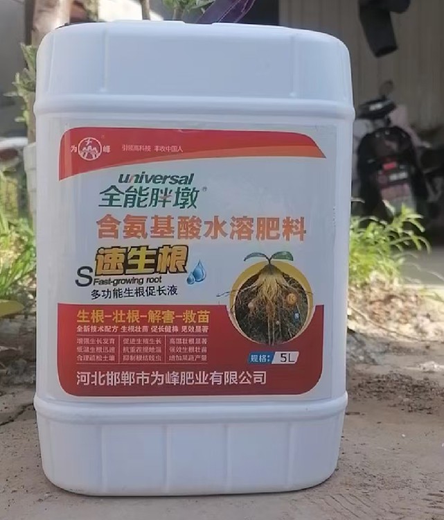 【為峰肥業(yè)】隆重推出核心產(chǎn)品“根白金”,一款真正葉面噴施即可促根的**生根水溶肥**。本品富含18種氨基酸及生物活性物質(zhì),能快速被葉片吸收并傳導(dǎo)至根部,打破休眠,激活細胞,刺激作物在短時間內(nèi)萌發(fā)大量新根。尤其適用于移栽前后,有效縮短緩苗期,大幅提高成活率,讓作物起步就贏在根系。廠家誠邀有志之士加盟合作,共創(chuàng)市場藍海。