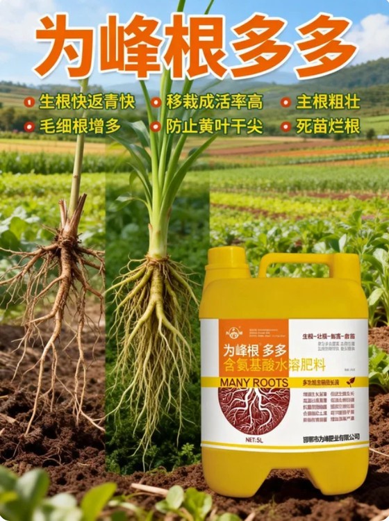 選沖施肥,看成分、看肥效、看口碑!根多多沖施肥,憑借優(yōu)質成分和卓越肥效,贏得萬千種植戶信賴!本品富含十八種氨基酸、高活性生根因子及高效生物刺激素,成分純正、配比科學,經(jīng)過多重檢測,肥效有保障、使用更放心。十八種氨基酸全面補營養(yǎng),生根因子強力促扎根,生物刺激素高效調土壤,三重功效協(xié)同發(fā)力,護根、補肥、調土壤一步到位,解決各類種植難題。無論是果蔬、糧油、花卉還是中藥材,無論是設施種植、露地種植還是育苗移栽,根多多都能適配,使用后作物長勢健壯、產(chǎn)量提升、品質優(yōu)良。操作便捷,沖施、滴灌皆可行,省時省力,性價比超高,是種植戶實現(xiàn)高效種植、提質增收的必備沖施肥,選擇根多多,每一季都有好收成!
