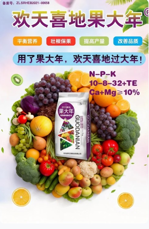 歡天喜地果大年適配瓜果、果樹、蔬菜全品類,生根壯苗直擊痛點(diǎn),快速改善苗株長(zhǎng)勢(shì),促根壯苗、弱苗復(fù)壯,讓植株根系發(fā)達(dá)、莖稈粗壯,為后續(xù)豐產(chǎn)奠定基礎(chǔ)。高效促進(jìn)授粉,提升花粉活性,解決果蔬授粉難、坐果低問(wèn)題,保花保果效果突出,坐果率顯著提升。膨果期精準(zhǔn)補(bǔ)養(yǎng),推動(dòng)果實(shí)快速膨大,果個(gè)均勻不畸形,同時(shí)美果靚果,讓果色自然鮮亮、果形周正美觀,瓜果、果樹、蔬菜品相俱佳,市場(chǎng)競(jìng)爭(zhēng)力更強(qiáng)。