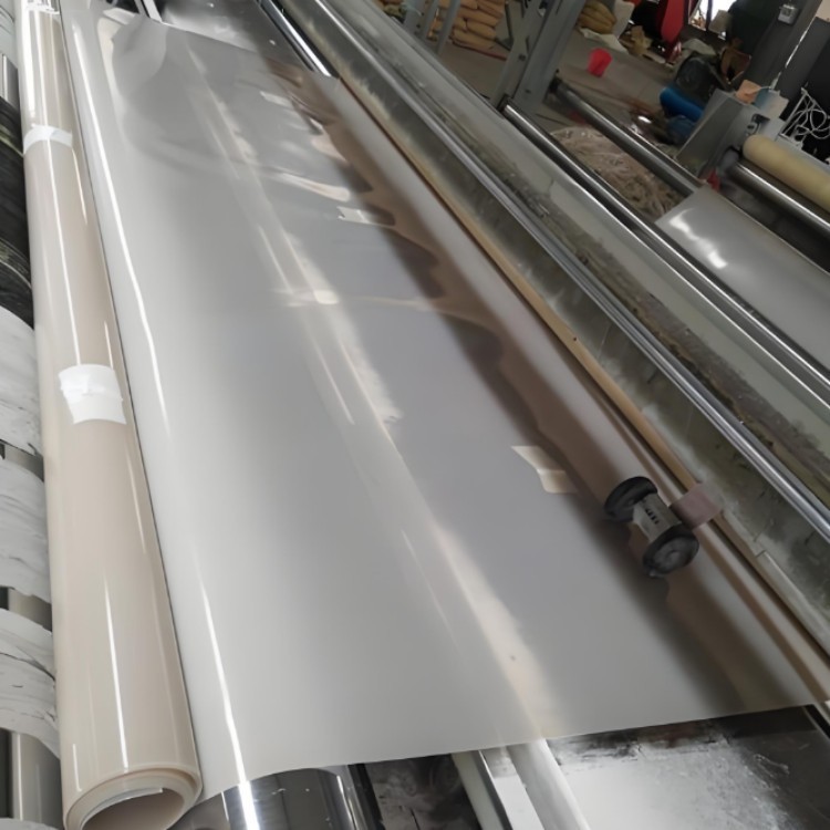 土工膜是以塑料顆粒(PE)為原料,加入混合干燥機(jī)混合干燥,通過(guò)螺桿擠壓到圓形漏斗,擠壓到料筒高溫高壓融化塑化,通過(guò)膜頭熔融狀態(tài)下成流線型擠出拉伸,經(jīng)壓延冷卻循環(huán)系統(tǒng)冷卻,鋼棍軋出光面,拉伸切邊成形。