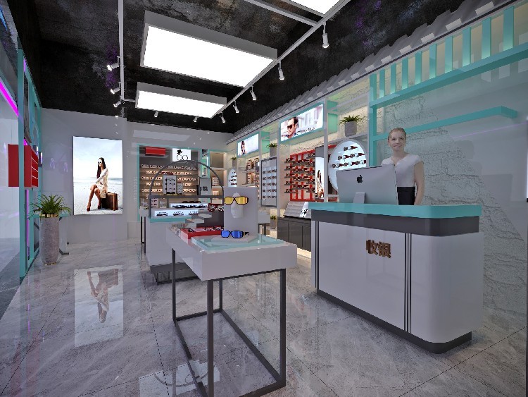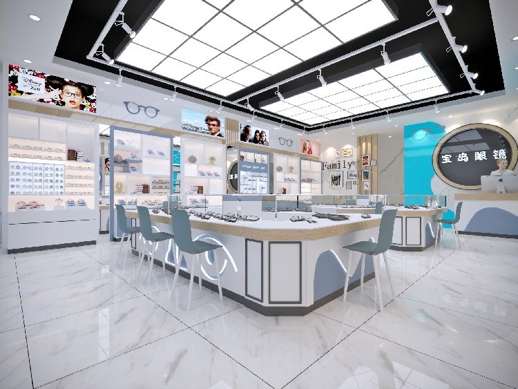 - 優(yōu)化柜臺布局:柜臺可采用靠墻高柜與中間開放式中島柜相結(jié)合的方式??繅Ω吖窨蛇x用2.4米左右的烤漆高柜,增加陳列空間。中島柜可設(shè)計(jì)為開放式,方便顧客自由瀏覽挑選,材質(zhì)上可采用玻璃與烤漆板相結(jié)合的方式,既通透又顯。此外,還可在入口處設(shè)置一個簡約的玻璃展示臺,用于陳列當(dāng)季新款或促銷款眼鏡。