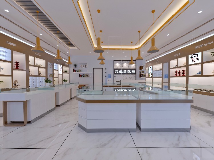- 潮流混搭風(fēng):融合米白色柜體與橙色、紅色等活力色塊,搭配木質(zhì)元素中和視覺沖擊。可在墻面加入眼鏡主題卡通墻畫或創(chuàng)意標(biāo)語,如“眼鏡不只是工具,更是時(shí)尚宣言”,強(qiáng)化記憶點(diǎn)。