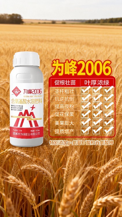 面對(duì)干旱、低溫、鹽堿等逆境挑戰(zhàn),為峰2006特別添加的γ-氨基丁酸(GABA)能顯著增強(qiáng)作物自身抗逆性,調(diào)節(jié)生理代謝,幫助作物在不良環(huán)境中保持正常生長(zhǎng),減少損失。為峰肥業(yè)致力于為種植戶排憂解難。廠家直供,品質(zhì)保證,歡迎實(shí)力伙伴洽談?wù)猩毯献鳌?br/>