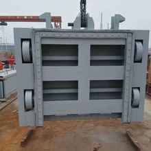 鑄鐵拍門按制作材料劃分。主要有木質(zhì)閘門、木面板鋼構(gòu)架閘門、鑄鐵拍門、鋼筋混凝土閘門以及鋼閘門。按閘門門頂與水平面相對(duì)位置劃分。主要有露頂式閘門和潛沒式閘門。(3)按工作性質(zhì)劃分。主要有工作閘門、事故閘門和檢修閘門。按閘門啟閉方法劃分。主要有用機(jī)械操作啟閉的閘門和利用水位漲落時(shí)閘門所受水壓力的變化控制啟閉的水力自動(dòng)閘門。按門葉不同的支承形式劃分。主要由定輪支承閘門、鉸支承閘門、滑道支承的閘門、鏈輪閘門、串輥閘門、圓輥閘門等。