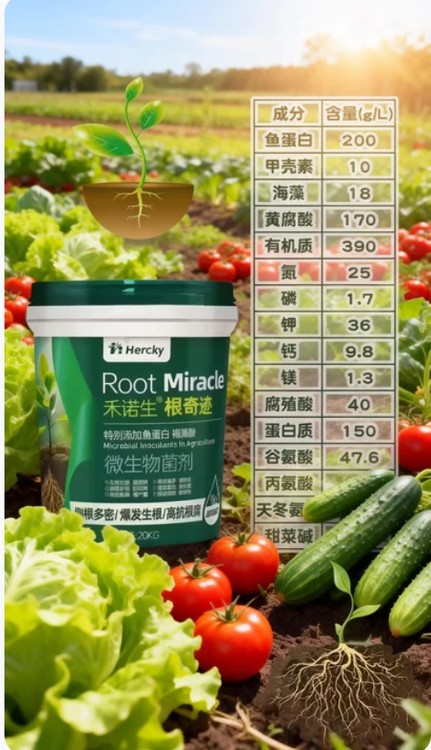 根系是作物的 “胃”,只有根系健康,才能實(shí)現(xiàn)高產(chǎn)。根奇跡作為一款專(zhuān)業(yè)生根型菌肥,采用復(fù)合微生物菌群 + 有機(jī)營(yíng)養(yǎng)配方,從兩方面呵護(hù)根系。高活性枯草芽孢桿菌和側(cè)孢短芽孢桿菌進(jìn)入土壤后,能快速定殖繁殖,抑制有害病菌,減輕根腐、莖基腐等病害。魚(yú)蛋白、海藻酸等有機(jī)物質(zhì)則為根系提供持續(xù)營(yíng)養(yǎng),刺激根原基分化,讓毛細(xì)根數(shù)量提升 3-5 倍。與普通生根劑不同,它不僅促根,更能養(yǎng)根、護(hù)根,在低溫、鹽堿等逆境下,仍能保持根系活性。使用后作物葉片濃綠、莖稈粗壯,坐果率和單果重顯著提高。適用于番茄、黃瓜、草莓等各類(lèi)作物,尤其適合苗期、移栽后及膨果期使用。農(nóng)技專(zhuān)家推薦,一桶根奇跡,為作物根系撐起 “保護(hù)傘”。