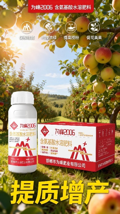 為峰2006含氨基酸水溶肥料不僅能滋養(yǎng)作物,其豐富的氨基酸成分還能改善根際微生物環(huán)境,促進(jìn)有益菌繁殖,間接起到改良土壤、提升地力的長效作用。為峰肥業(yè)關(guān)注農(nóng)業(yè)可持續(xù)發(fā)展。誠邀農(nóng)資經(jīng)銷商代理這款環(huán)境友好的優(yōu)質(zhì)產(chǎn)品,共同服務(wù)現(xiàn)代種植業(yè)。