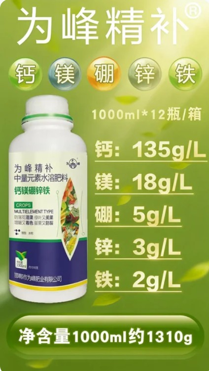 首頁>農(nóng)化網(wǎng) >農(nóng)業(yè)肥料>葉面肥 >為峰精補鈣鎂硼鋅鐵正品促進糖分..