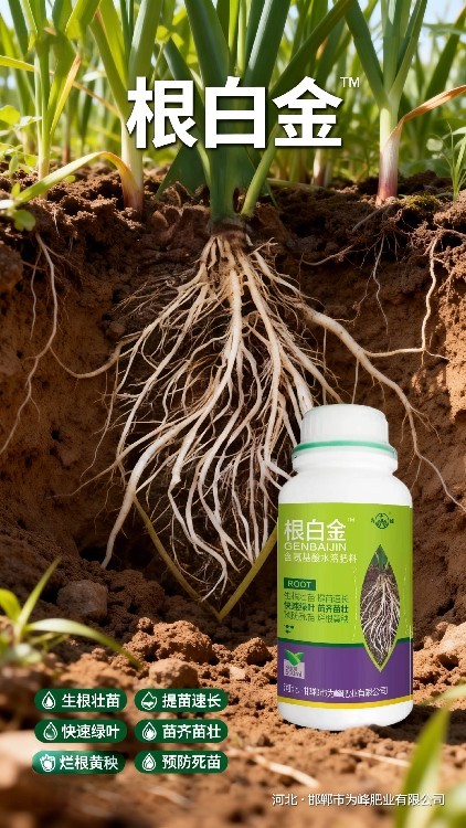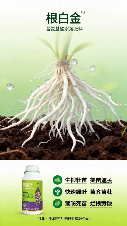 【為峰肥業(yè)】隆重推出核心產(chǎn)品“根白金”,一款真正葉面噴施即可促根的**生根水溶肥**。本品富含18種氨基酸及生物活性物質(zhì),能快速被葉片吸收并傳導(dǎo)至根部,打破休眠,激活細(xì)胞,刺激作物在短時(shí)間內(nèi)萌發(fā)大量新根。尤其適用于移栽前后,有效縮短緩苗期,大幅提高成活率,讓作物起步就贏在根系。廠家誠(chéng)邀有志之士加盟合作,共創(chuàng)市場(chǎng)藍(lán)海。
