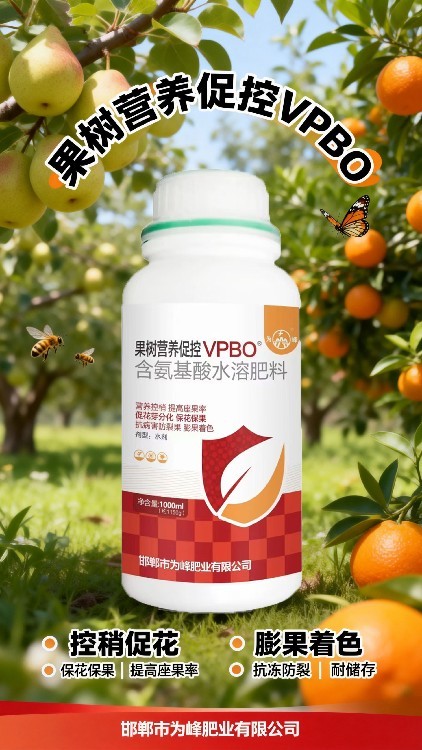 營養(yǎng)失衡影響收成?VPBO營養(yǎng)促控劑幫助果樹平衡生長!它智能調(diào)節(jié)養(yǎng)分分配,使枝葉與花果協(xié)調(diào)發(fā)育,避免徒長或早衰。為峰肥業(yè)的產(chǎn)品蘊含多種活性成分,提升樹體活力,增強抗逆能力。使用后,果樹樹勢穩(wěn)健,連年豐產(chǎn)有望。平衡營養(yǎng)是豐產(chǎn)基石,VPBO值得信賴。咨詢招商電話,獲取專業(yè)指導。