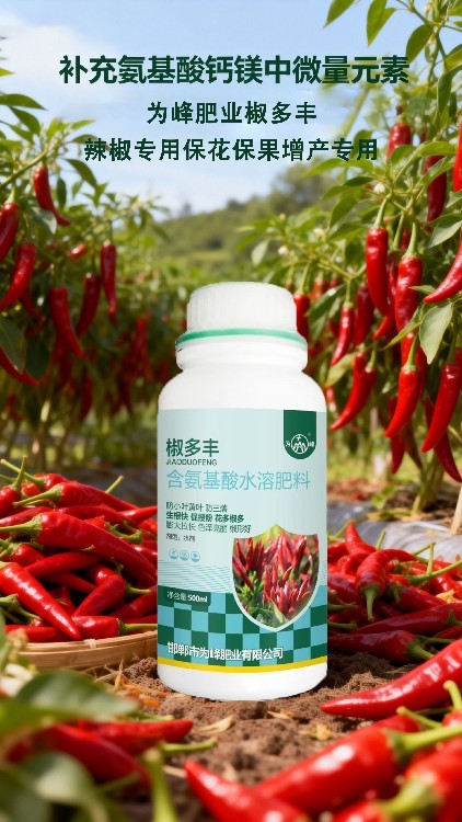 【為峰肥業(yè)】匠心推出“椒多豐”辣椒專用氨基酸葉面肥。本品專注于解決辣椒種植難題,有效?;ū9?,預(yù)防落花落果,助力果實膨大拉長。其特有配方能增強植株抗逆性,是椒農(nóng)實現(xiàn)優(yōu)質(zhì)高產(chǎn)的得力助手。誠邀各地農(nóng)資伙伴加盟合作,共創(chuàng)市場。