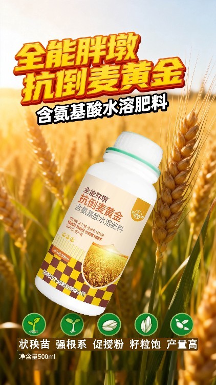 不是所有葉面肥都叫“全能胖墩”, 市面上葉面肥種類繁多,如何選擇?為峰肥業(yè)的全能胖墩,集營養(yǎng)補充、生長調(diào)控、抗逆提升于一體,針對小麥生長痛點研發(fā),功能更為全面。補營養(yǎng)、抗倒伏、增粒重,一瓶多效,減少重復(fù)投入。選擇專業(yè),才能創(chuàng)造更大價值。體驗小麥增產(chǎn)葉面肥的綜合效能,請選擇為峰肥業(yè)麥黃金。