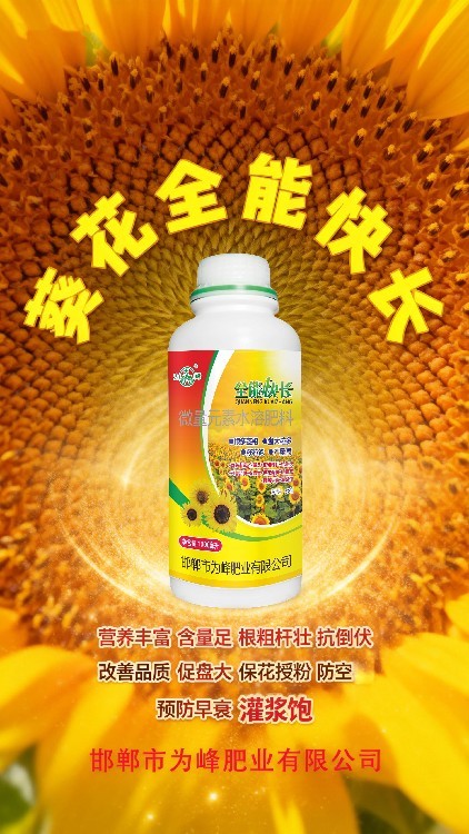 選擇一款好產(chǎn)品,更是選擇一個可靠的合作伙伴。為峰肥業(yè)以優(yōu)質(zhì)產(chǎn)品和完善服務(wù)為后盾,現(xiàn)通過全能快長葵花專用葉面肥面向全國開展招商。我們期待與有志于農(nóng)資事業(yè)的您攜手同行,共同為廣大葵花種植戶提供價(jià)值,分享產(chǎn)業(yè)發(fā)展成果。歡迎來電洽談合作!