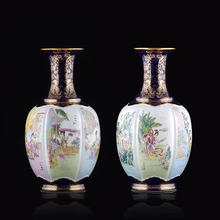 王錫良、王采創(chuàng)作十二金釵粉彩對(duì)瓶重工粉彩霽藍(lán)描金塑形雕刻