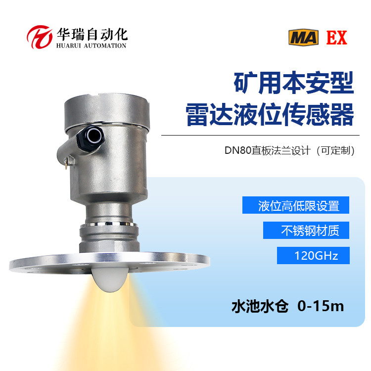 礦用本安型雷達(dá)液位傳感器水箱水池液位監(jiān)測(cè)DN80法蘭不銹鋼材質(zhì)