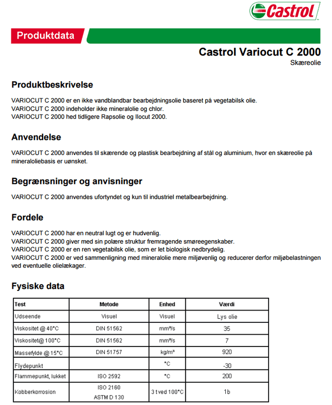 操作上金屬銅和鋁合金。variocut C 2000是一個不基于植物油。