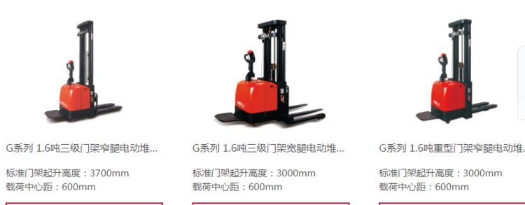 堆垛車,電動(dòng)托盤堆垛車分為全電動(dòng)托盤堆垛車和半電動(dòng)托盤堆垛車兩種類型,顧名思義,前者為行駛,升降都為電動(dòng)控制,比較省力。而后者是需要人工手動(dòng)拉或者推著叉車行走,升降則是電動(dòng)的。承載能力為 1.0~2.5噸,作業(yè)通道寬度一般為2.3~2.8米,在結(jié)構(gòu)上比電動(dòng)托盤搬運(yùn)叉車多了門架,貨叉提升高度一般在4.8米內(nèi),主要用于倉(cāng)庫(kù)內(nèi)的貨物堆垛及裝卸。前移式車,承載能力1.0~2.5噸,門架可以整體前移或縮回,縮回時(shí)作業(yè)通道寬度一般為2.7~3.2米,提升高度高可達(dá)11米左右,常用于倉(cāng)庫(kù)內(nèi)中等高度的堆垛、取貨作業(yè)。